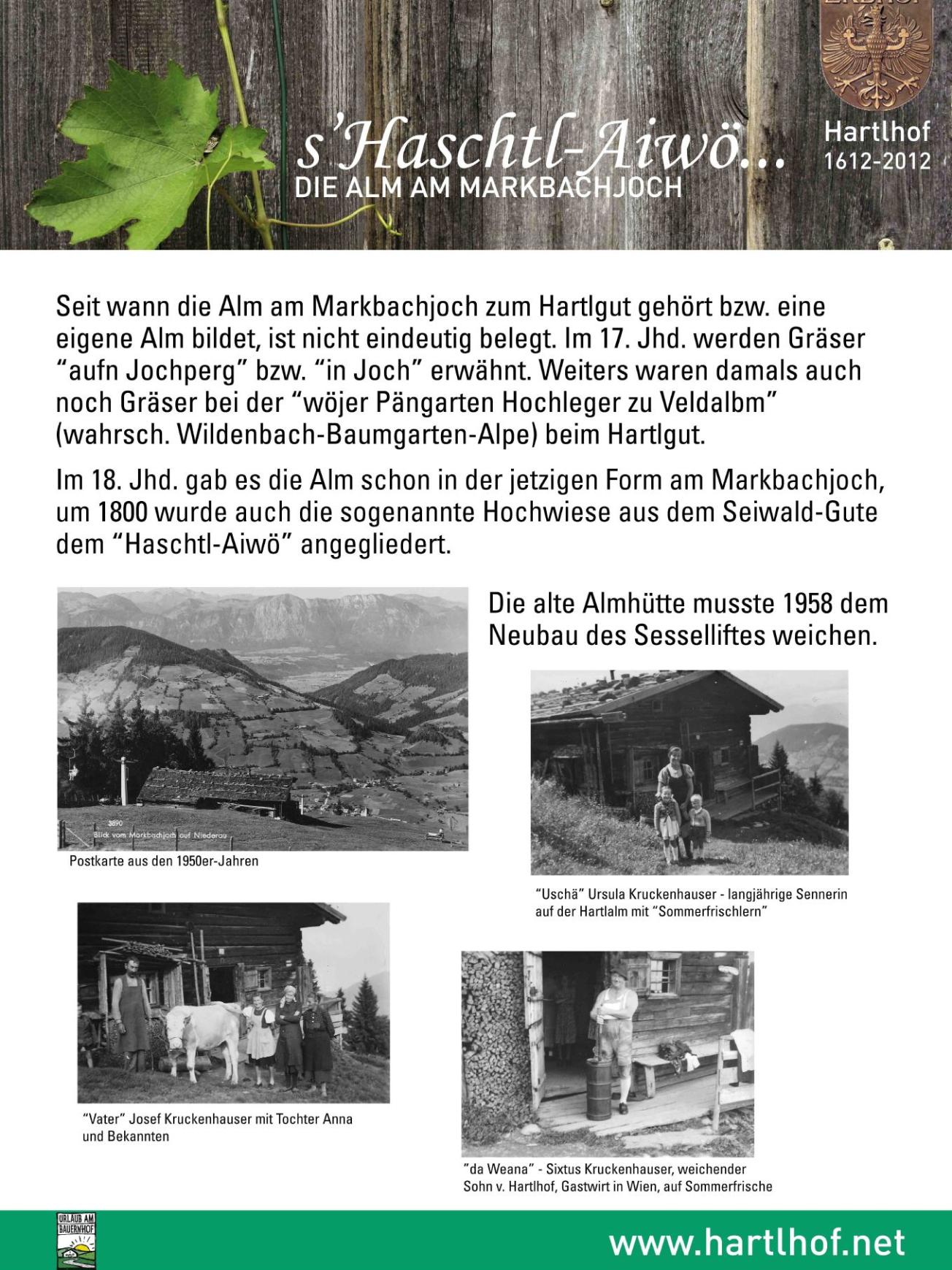 Die Hartlalm liegt auf etwa 1.465 Metern am schönen Markbachjoch und ist mit der Gondel ganz bequem zu erreichen. Wer gerne zu Fuß unterwegs ist, kann über einen idyllischen Forstweg direkt vom Hartlhof aus zur Alm wandern.